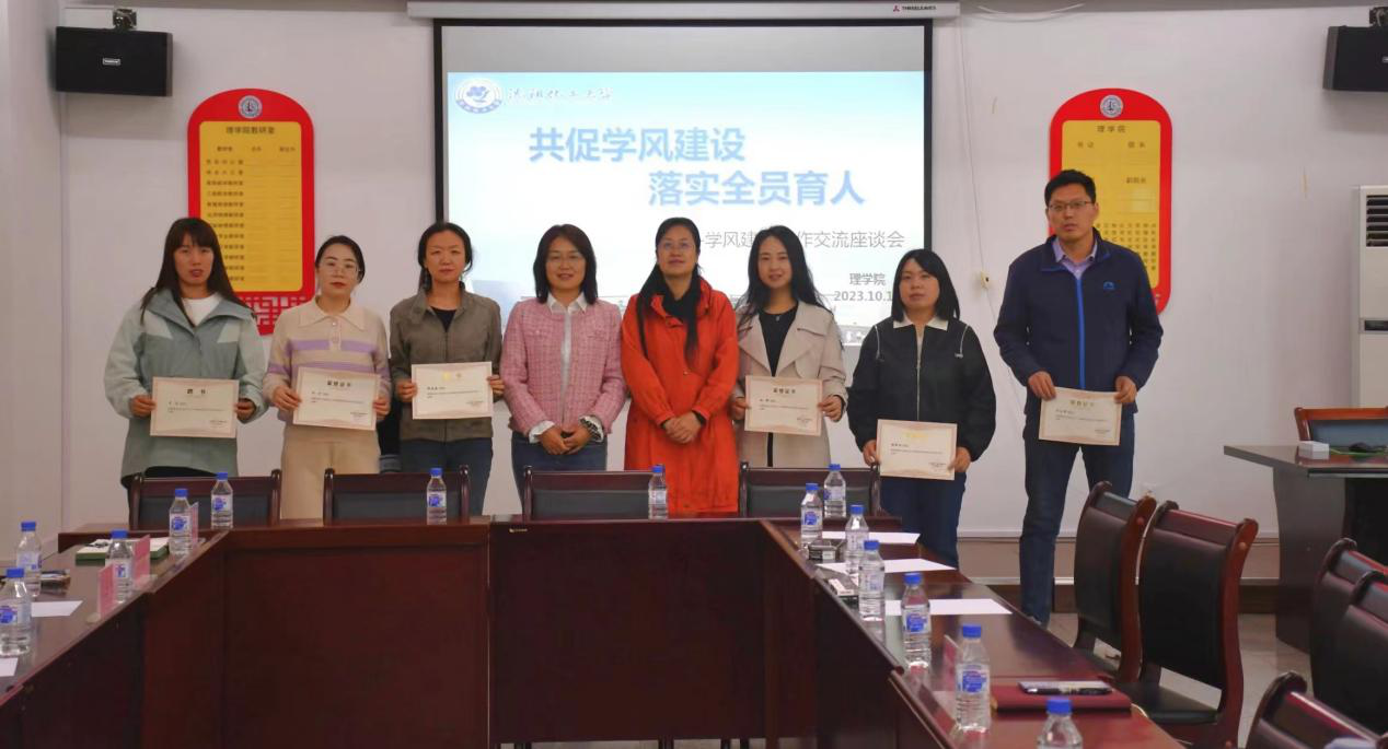 为了更好的营造浓厚的学习氛围,创建优良学风,提高学风建设成效,引导学生端正学习态度、培养良好学习习惯,帮助学生成长成才。理学院于2023年10月17日在致本楼D316组织召开“共促学风建设,落实全员育人”学风建设交流座谈会,参加本次会议的有理学院党委书记徐平、理学院辅导员和全体班主任、部分113导师代表、部分低年级基础课教师代表、专业课教师代表。会议由理学院党委副书记杨海霞主持。