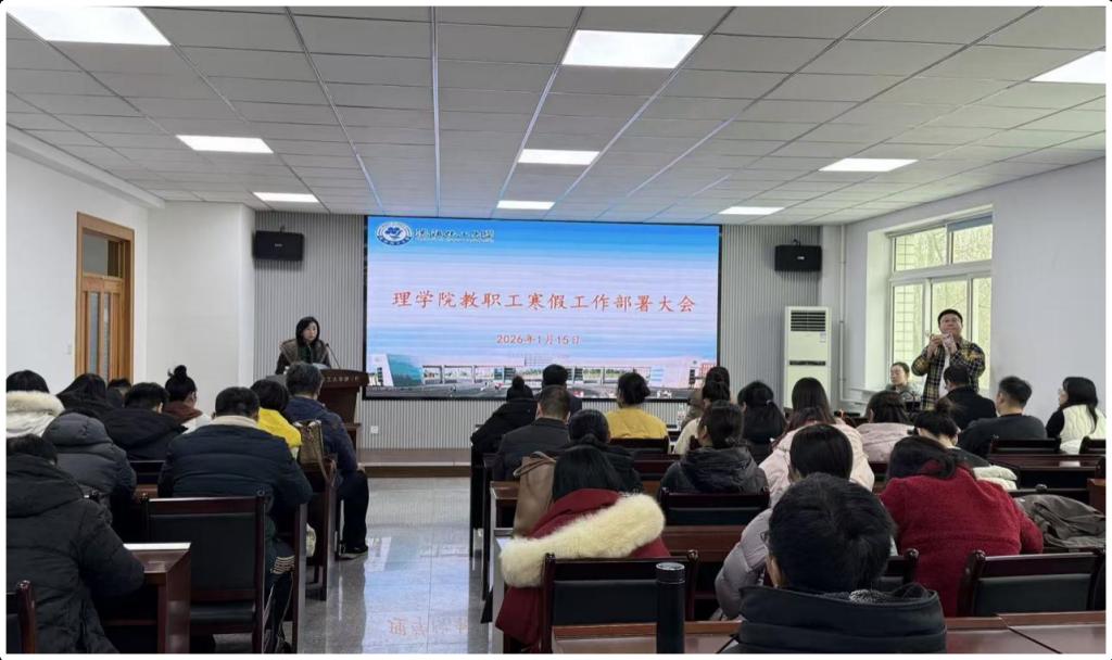 为统筹推进寒假期间各项工作,确保学院教学管理与育人工作有序衔接,理学院于2026年1月15日在致本楼D座会议室召开寒假工作部署会,理学院领导班子成员出席会议,全体教职工参加会议。