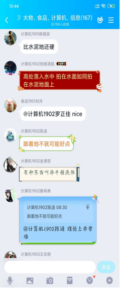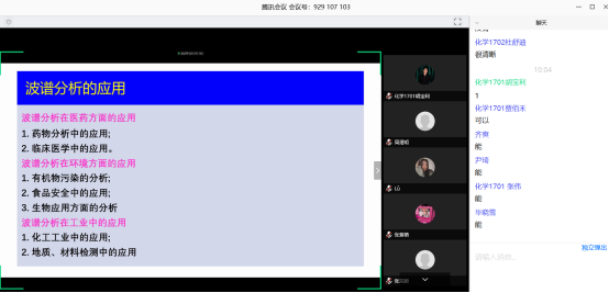 不仅教师,同学们也是第一次接触网络的教学模式,同学们面对这样的新鲜事物,都不由得感到十分兴奋“以前是各个教学楼地走,现在是要切换各个软件” “这个课上得特别轻松,没有平时的压抑感。”“以前上课都不敢回答问题,现在特别喜欢和老师互动”… 在老师们改变教学风格和教学模式后,同学们表现出了高度的热情,老师每出一个课堂问题,公屏上便有同学们的回答,以往同学们害怕答错不敢举手,而现在老师可以直观的看到同学们的掌握状况,以便于对自己的教学内容进行调整。然而网课也是对同学们自制力的一个挑战,一桌一椅一手机一电脑,同学们是否能不辜负这一方小天地,还要靠同学们对自己的高标准,严要求,辅导员与任课教师也不断做着同学们的工作,让同学们能切切实实的学习知识,吸收营养,而不是在家虚度光阴。