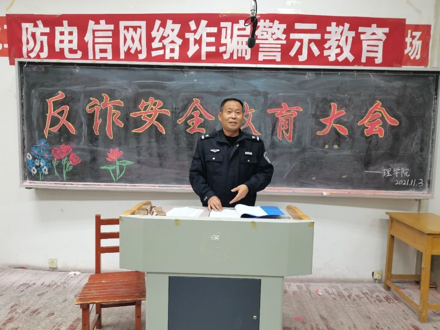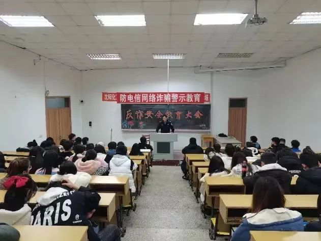 为提升学校师生电信网络诈骗防诈能力,切实维护师生生命财产安全,遏制电信网络诈骗案件高发势态。2021年11月03日18:30,理学院在碧帆楼204举办了“反诈安全教育大会”。特邀请沈阳市西三环派出所代所长担任主讲嘉宾。