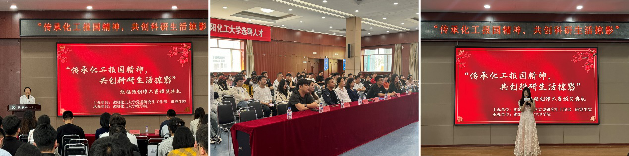 为深入学习贯彻党的二十大精神,增强研究生的创新思维和综合素养,丰富研究生的课余文化生活,培养以“化工报国”为内核的爱党爱国精神,集中展示沈阳化工大学研究生学子积极向上的精神风貌,5月24日下午,沈阳化工大学第二届研究生学术文化节系列活动之“传承化工报国精神共创科研生活掠影”短视频创作大赛表彰大会于青年之家圆满落幕。活动由党委研究生工作部主办,理学院承办,党委研究生工作部部长杨海霞、理学院党委副书记高天骄及相关学院研究生辅导员出席活动。