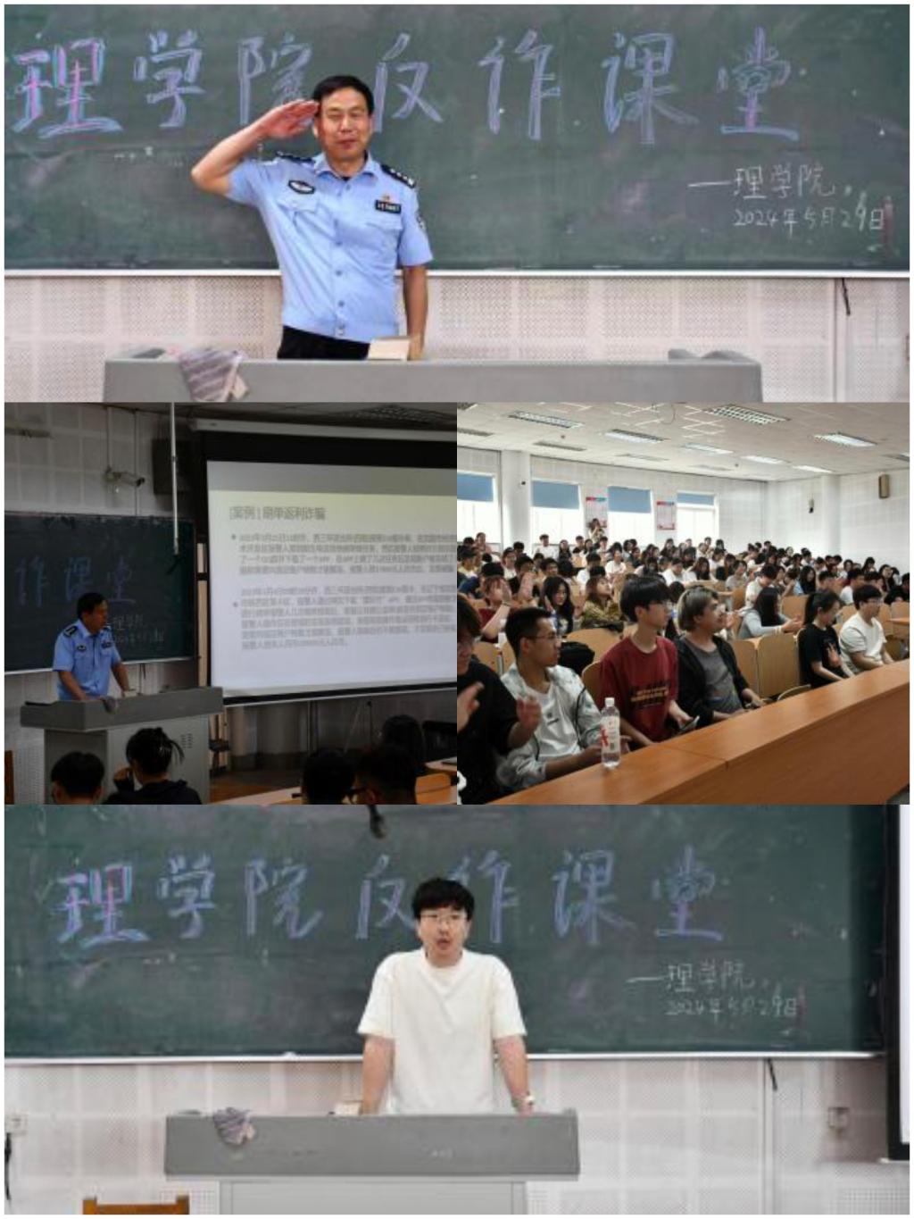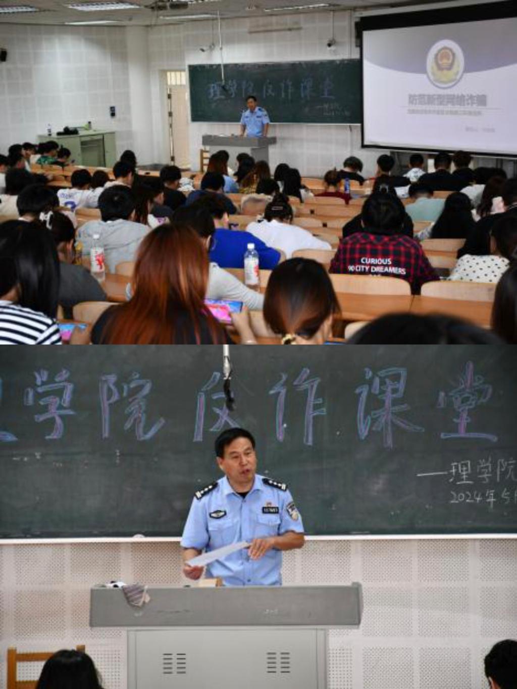 为持续加强校园反诈防诈宣传工作,提高学生防范电诈警情意识,保障学生生命财产安全,营造和谐稳定校园环境,5月29日,理学院在瑞师楼224教室开展了“紧绷防范之弦,筑牢安全防线”反诈宣传活动。活动邀请铁西区西三环派出所所长代长岭主讲,学校保卫处干事刘智峰、理学院分团委书记张卓夫及理学院本研全体同学参加活动。