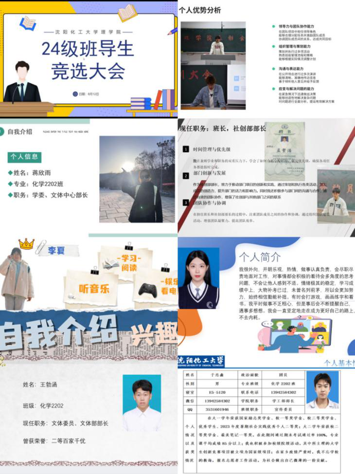 最终经过两个环节的综合评分,遴选出化学2401班级班导生是化学2201潘宇航、化学2202李墁;化学2402班级班导生是化学2202于忠鑫、化学2202蒋欣雨。
