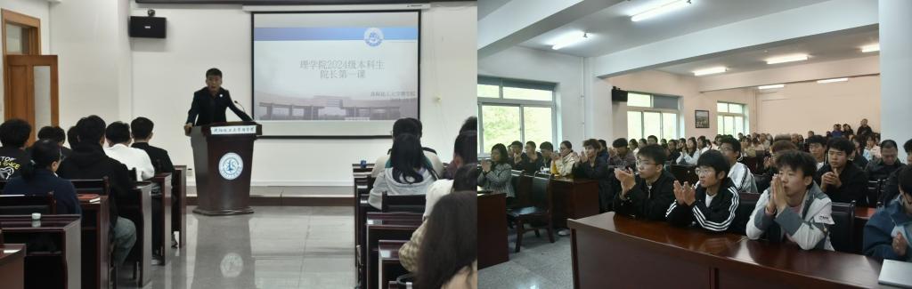 近日,理学院在致本楼D座会议室开展2024级新生入学教育暨“院长第一课”活动。理学院党政领导班子和全体2024级本科生共同参加。活动由理学院分团委书记张卓夫主持。