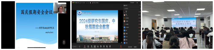 为切实做好中秋、国庆假期研究生安全教育与管理,增强学生安全防范意识,排查整治各类安全隐患,保障学生人身财产安全,理学院组织各年级研究生召开假期安全教育会议。会议分别由2023级研究生辅导员孙旭、2024级研究生辅导员林爽,2025级研究生辅导员张冰主持。