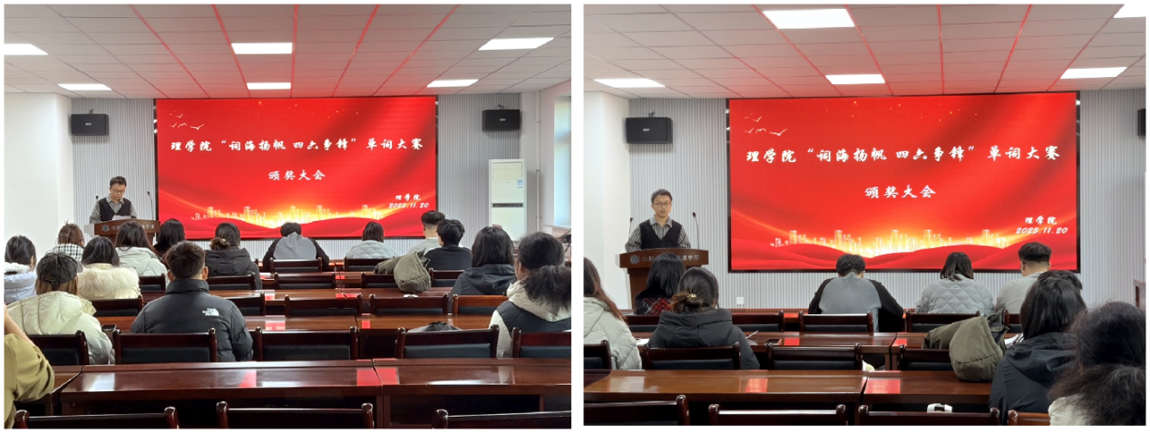 张卓夫、张冰为在单词大赛中脱颖而出的优秀学生进行了表彰。高天骄作总结讲话,她指出要以此次活动为新的起点,并鼓励同学们将比赛中展现的学习热情转化为持续动力,逐步养成每日积累、勤学善思的英语学习习惯,通过持之以恒的努力实现英语水平的稳步提升,为即将到来的大学英语四六级考试做好充分准备,力争在考试中取得优异成绩。