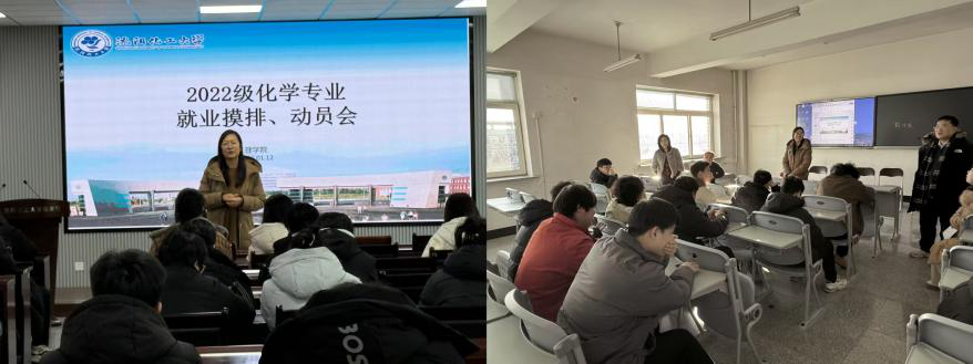 为促进2026届毕业生准确把握就业形势,树立正确就业观,1月7日、1月12日,在致本楼D座会议室分别召开了应用物理专业与化学专业就业分析动员会。党委书记徐平、院长李文泽、党委副书记高天骄、副院长吴会咏、各专业教研室主任、毕业生班主任及2023级研究生辅导员孙旭出席会议,2026届全体毕业生参加会议。会议由学院分团委书记张卓夫主持。