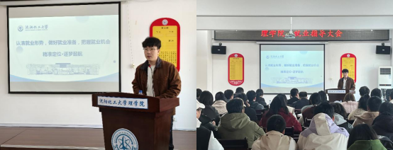 为做好高校毕业生就业工作,帮助学生树立正确的就业观、择业观,明确未来发展前景,提升就业质量,3月15日下午,理学院于致本楼D座316召开“精准定位·逐梦起航”——2024届毕业生就业指导大会。本次会议诚邀校招生与就业工作处副处长曾祥福作就业指导讲座。理学院党委副书记高天骄、研究生辅导员张潇飒及张晓菲出席会议。会议由本科生辅导员张卓夫主持。理学院2024届本科、研究生未就业毕业生参加会议。