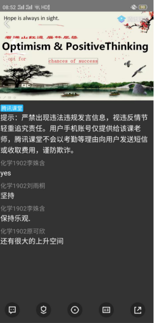 理学院同学们学习的身影出现在学习通、钉钉、腾讯会议、腾讯课堂等各种教学互动软件,签到、抢答、选答,同学们在课堂上与老师积极互动,虽然是线上教学,但是同学们尽快适应了这种新颖的学习方式,课前做好预习,课上认真听讲,课后认真完成作业。课堂上每一次按照学号顺序的整齐的签到,都是同学们上课的认真态度的映射;课堂上老师每一次的手写板书,都是老师对同学们润物细无声的爱;课堂上每一次的师生互动学习时间,都是师生默契度的提升。理学院此次“停课不停学,奋斗正当时”主题活动在展示同学们课堂优秀风采的同时,也让我们看到了老师们教学认真的态度和那些藏在严肃形象下对同学们默默付出的爱。正所谓“新竹高于旧竹枝,全凭老干为扶持。”同学们课堂上认真积极的表现抚平了老师教学的疲劳。