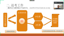 数学党支部在疫情期间,为了保证学生顺利完成本学期成绩考核工作,通过线上会议方式安排了期末监考、巡考工作。经过与会教师的研讨与分析,制定出可行的考核方法,使得考核工作顺利开展。