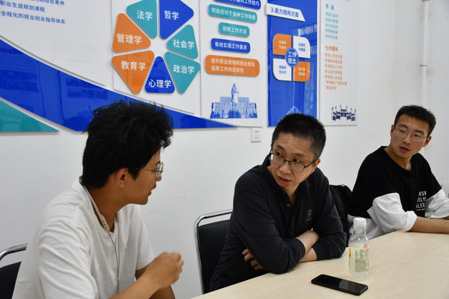 5月24日,理学院分党委组织高等数学教研室党支部党员教师深入“一站式”学生社区开展党日活动。下午2:30,吴会咏、王欣彦、王江三位党员教师来到位于大学生生活城F2座1楼的博雅书苑,分别于“学在化大”“职梦化大”“原创化大”三个空间,围绕高等数学课业问题、学习方法、答题技巧等,开展个性化辅导。通过“家在化大”微信平台自主报名,来自全校的36名同学参加了活动。