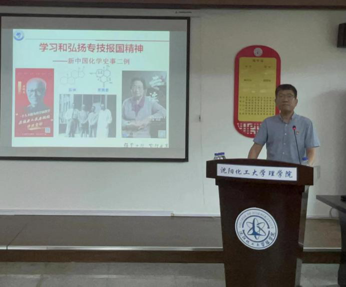 2023年6月21日,理学院副院长任保轶为全体党员讲授《学习和弘扬专技报国精神》。任保轶以黄鸣龙、屠呦呦化学报国的故事为例,强调了科技对推动国家复兴的重要意义,要求全体党员坚定文化自信,树立科学理念,提升专业素养,为实现中国现代化发挥力量。