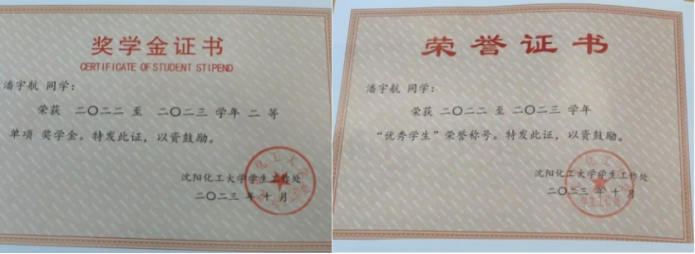 潘宇航,男,汉族,2003年出生,共青团员,沈阳化工大学2022级化学专业大四学生,曾多次获得“优秀学生”,单项奖学金和“百家千优”等荣誉称号