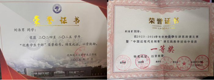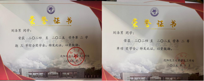 在学习上,刘浩男目标清晰,勤奋刻苦。面对化学专业的理论与实验课程,她善于归纳总结,乐于在实验中发现问题,验证猜想。自入校以来,她的学业成绩稳步提升,多次跻身班级前列,并获评三等奖学金。作为学生干部,她常在课余时间组织学习交流,帮助同学梳理难点,带动形成互帮互助的学习氛围。在她看来,求知不仅是获取知识,更是锤炼思维与提升解决问题的能力。